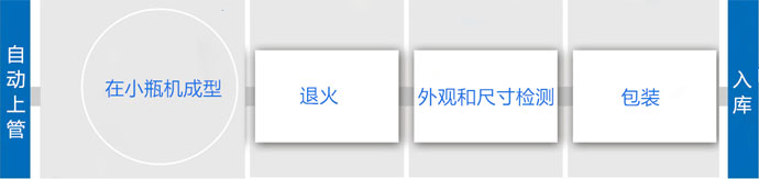 從玻璃管生產(chǎn)出來之后,通過輸送鏈單根輸送到制瓶車間,再通過機(jī)器手插到機(jī)器上開始進(jìn)行生產(chǎn)。然后進(jìn)入遠(yuǎn)紅外線電退火爐退火后,再進(jìn)入在線攝像機(jī)檢測(cè)系統(tǒng)進(jìn)行檢測(cè),然后包裝入庫。