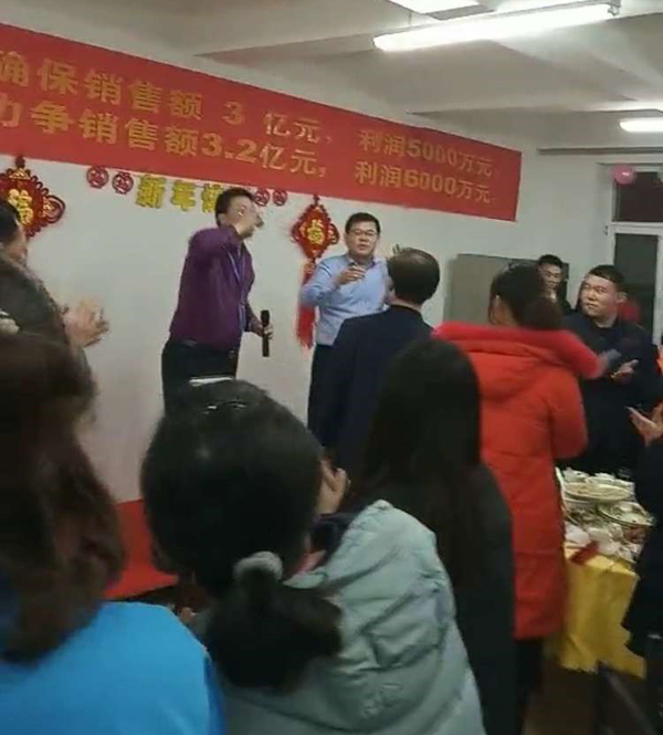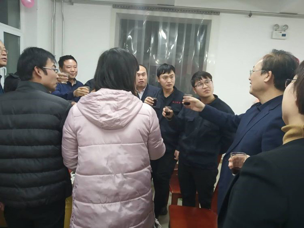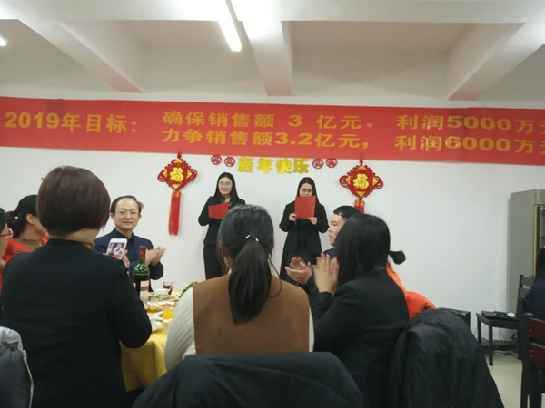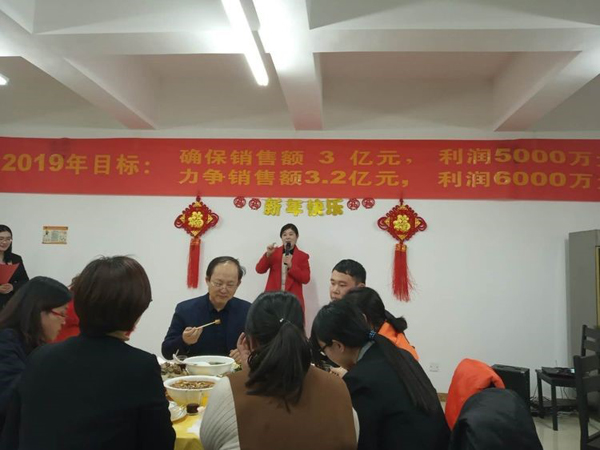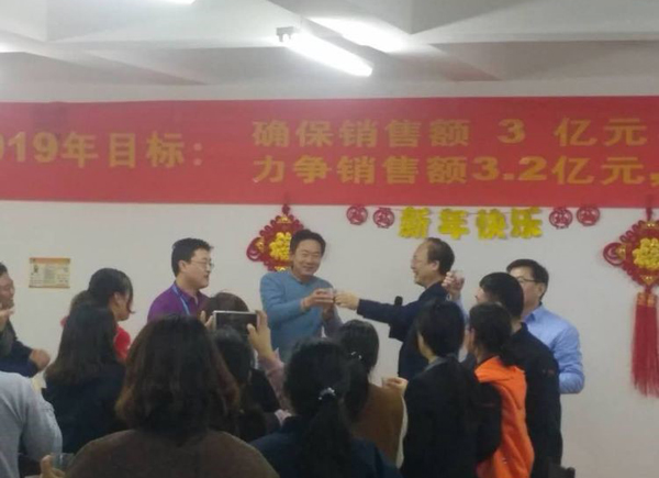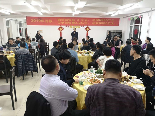 董事長首先給大家拜年鞠躬,感謝大家一年來的付出。回顧2018年的艱難與艱辛,社會經(jīng)濟形勢疲軟,公司雖然緊張但已經(jīng)是同地區(qū)過的最好的大公司,感謝大家這一年對公司的信任與支持,同時也肯定了2018年是公司業(yè)績最優(yōu),技術突破最多,成績最好的一年。