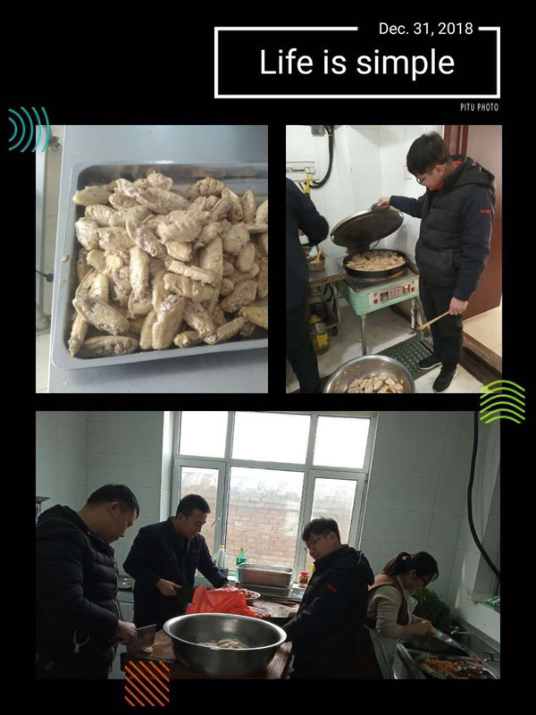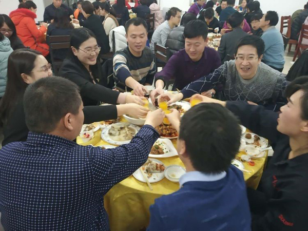 希望大家盡情享受這次歡聚,同時感謝高管們?yōu)榇蠹曳⻊,感謝食堂全體員工的配合與付出,各個部門的精心準備,感謝吳夢蝶、王明明、王震山等的精心準備。更加感謝所有同事們2018年的艱辛付出。希望我們再接再厲,認真落實公司的每一項要求,爭取完成公司的新年目標,收獲一個美好的2019年,謝謝大家,來年再聚。