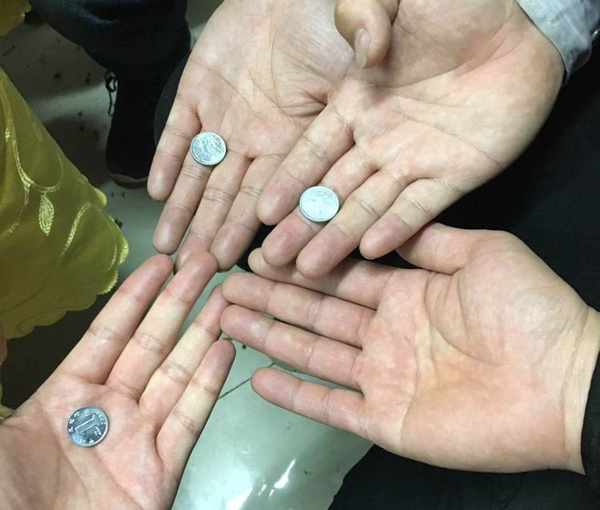 接下來進入一發(fā)不可收拾的環(huán)節(jié),包餃子的時候,活動籌備組特意準備30多個硬幣放在餃子里,吃到硬幣的幸運職工小伙伴們可以兌換獎金。1毛硬幣兌換10元,5毛硬幣兌換50元。