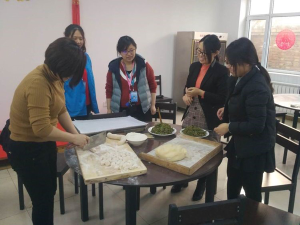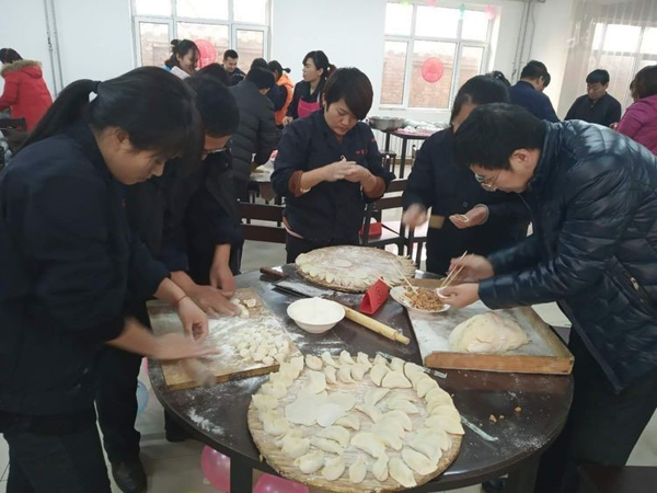 包餃子啦,我們電子商務部的還沒有嫁人,需要學習包餃子,以后好讓婆婆喜歡。