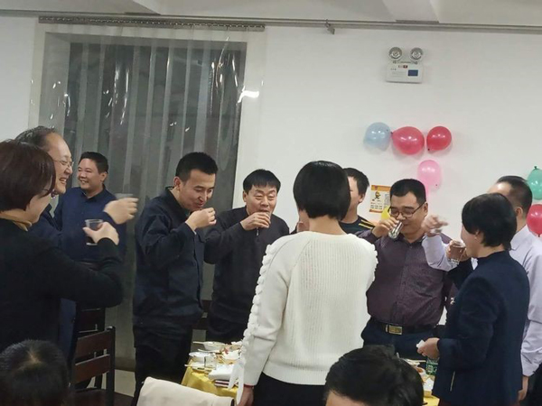 同事,職工朋友們相互敬酒,場面堪稱宏偉壯觀啊